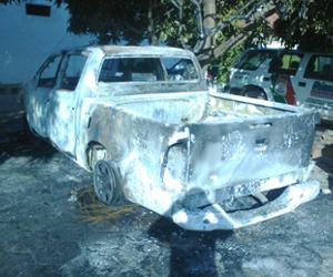 A Hilux explodiu, assustando os vizinhos, por volta de 4h30 da madrugada. Ao perceberem o fogo, ajudaram o único policial que estava de plantão a controlar as chamas do veículo, que teve perda total.