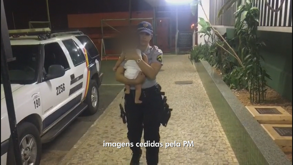 Cabo da PM levando bebê a delegacia (Foto: Reprodução)