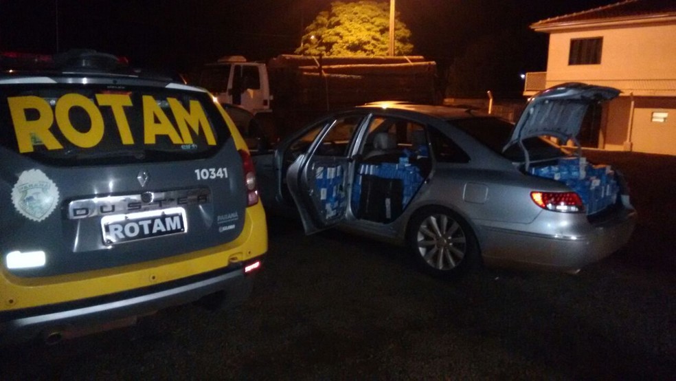 Carro que vereador dirigia tinha 1.327 pacotes de cigarro contrabandeado, de acordo com a PM (Foto: Divulgação/PM)