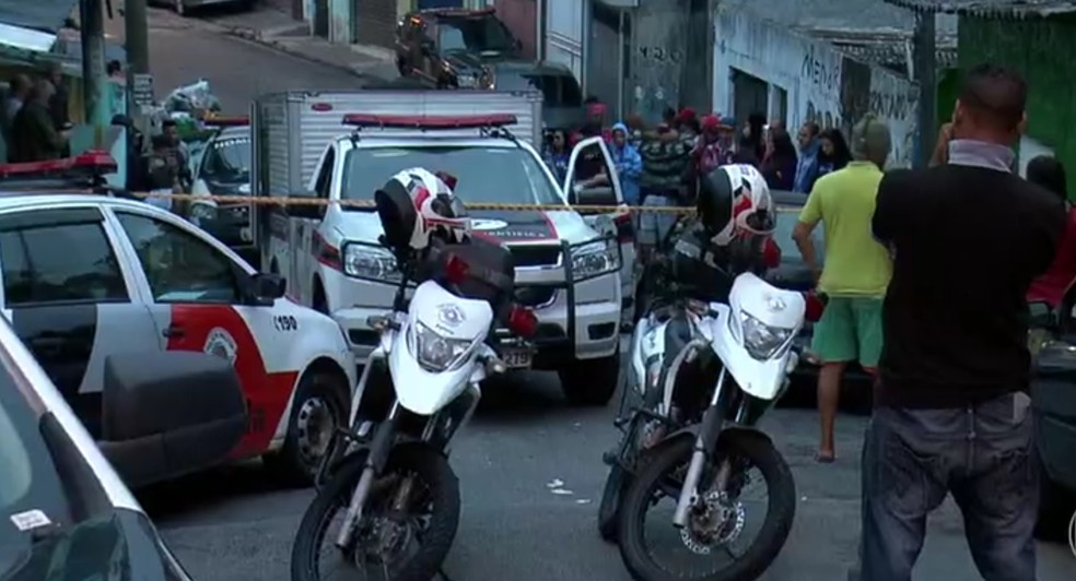 Polícia isola área onde quatro pessoas morreram em chacina na Vila Albertina (Foto: Reprodução/TV Globo)