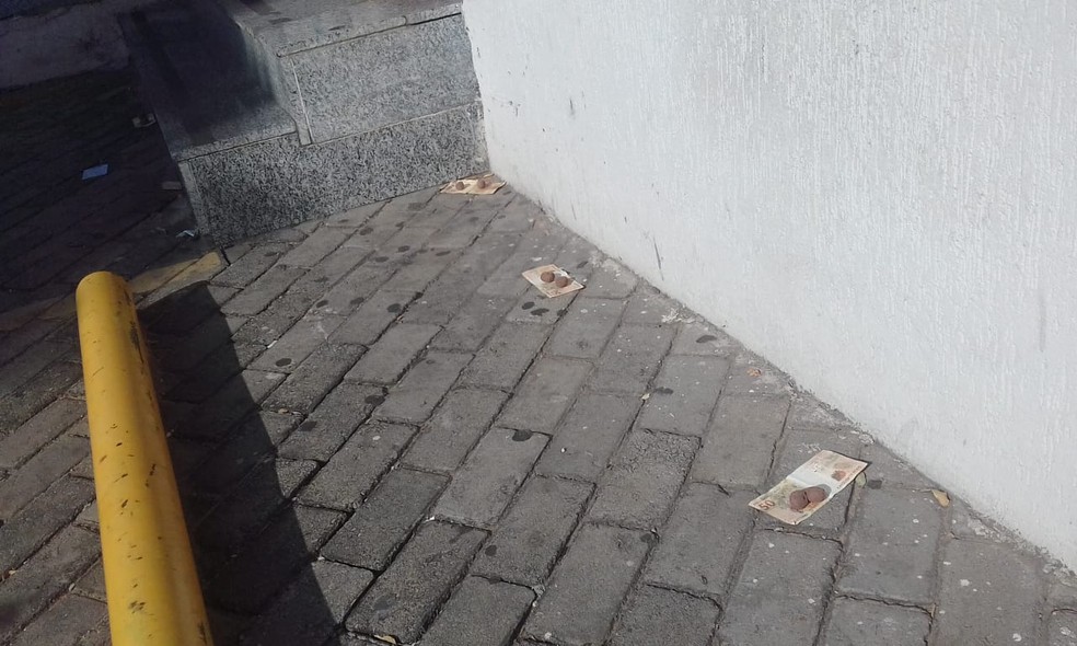A polícia encontrou dinheiro dentro e fora da agência do Banco Santander (Foto: Mariana Rocha)
