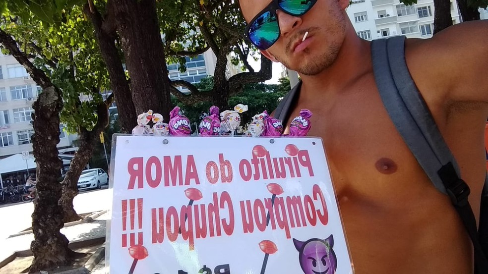 Maycon Soares trabalhou vendendo pirulitos durante a Parada do Ourgulho LGBTI, em Copacabana, antes do acidente no último domingo (30). — Foto: Reprodução/arquivo pessoal