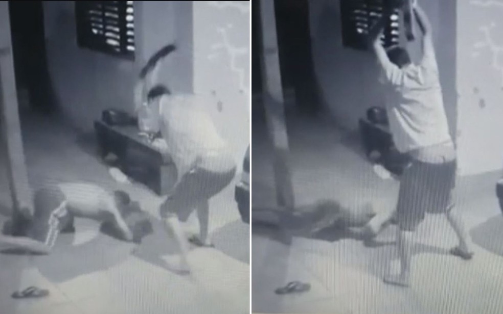 Homem é espancado na garagem de casa em Barretos, SP. Crime foi motivado por ciúmes. — Foto: Reprodução/Câmeras de segurança