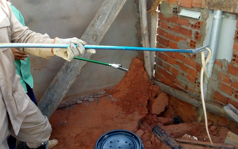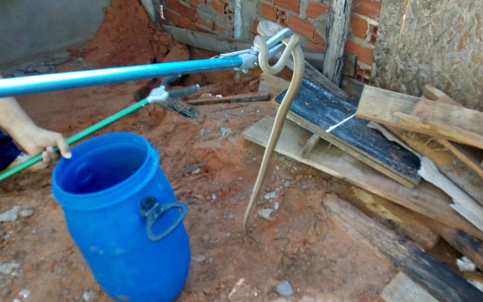 O Corpo de Bombeiros capturou na manhã desta quarta-feira (6) uma cobra, de aproximadamente 1,5 metro de comprimento, dentro de uma caixa de correio, numa casa em construção em Posse, no Entorno Distrito Federal.