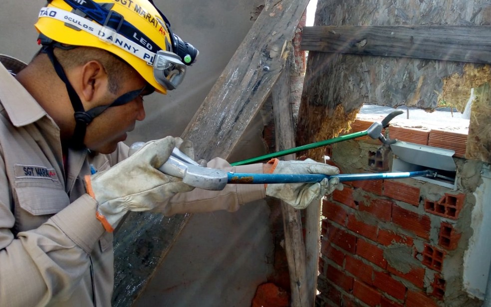 De acordo com o sargento Ivo Marat, que fez o resgate, os trabalhadores acionaram a corporação assim que localizaram o animal.
