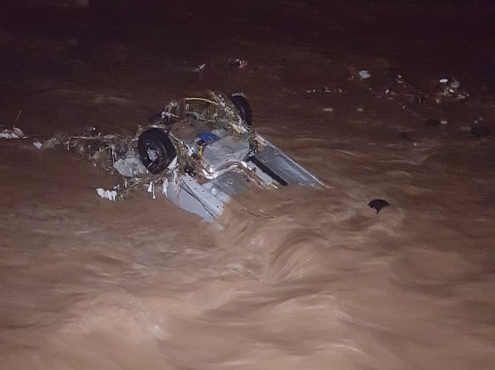 Força da água que transbordou de canal no Crato chegou a arrastar carros. — Foto: Felipe Guimarães/Arquivo Pessoal