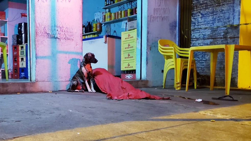 Animal ficou ao lado do corpo do dono até a chegada de conhecidos — Foto: Guaraí Notícias/Divulgação
