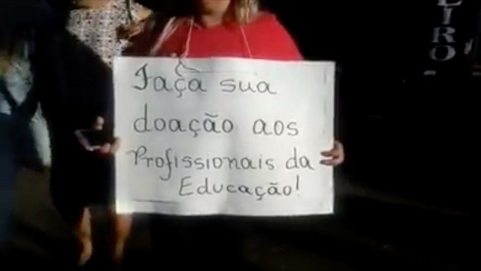 Servidores da Educação pedem dinheiro nas ruas — Foto: Reprodução
